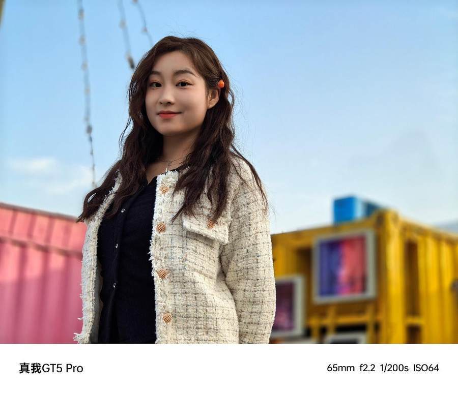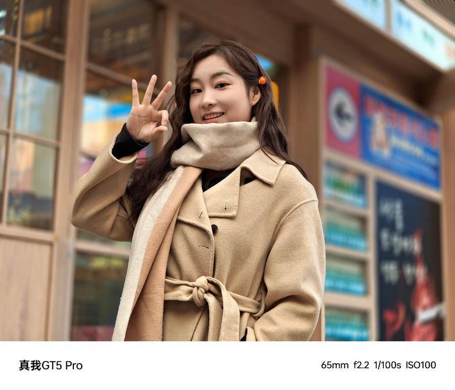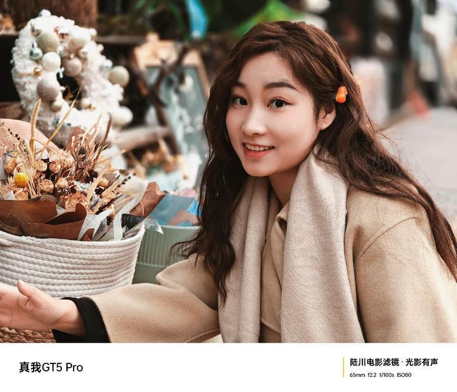 真我 GT5 Pro 的潜望式长焦不仅可以拍摄更远的景物, 同时也是一支等效 65mm 焦段的 人像镜头,并且在人像拍摄方面也非常有质感以及真实的人像虚化效果,结合滤镜效果 还能拍出极具电影氛围感的人像大片。