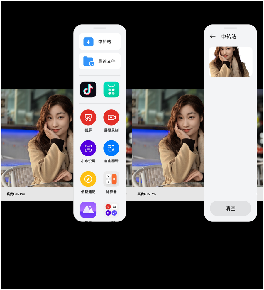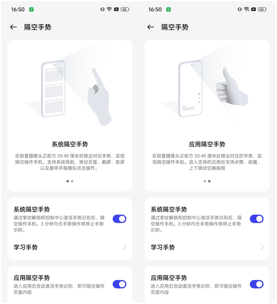 此外,真我 GT5 Pro 还支持手势操控,并且实现了全场景的手势操控,在主屏上可以单 指移动光标,双指捏和或者下压可以打开应用,在抖音等短视频应用中,还可以上下左 右手势切换视频内容,还可以使用手势点赞或者加关注,功能非常全。