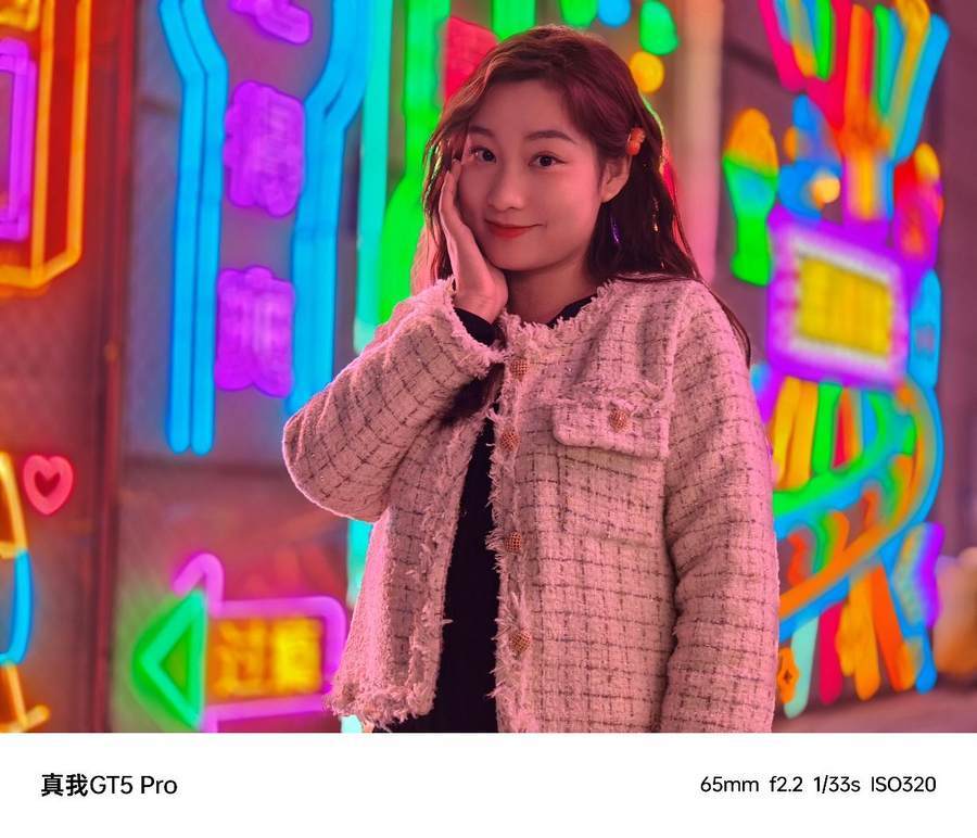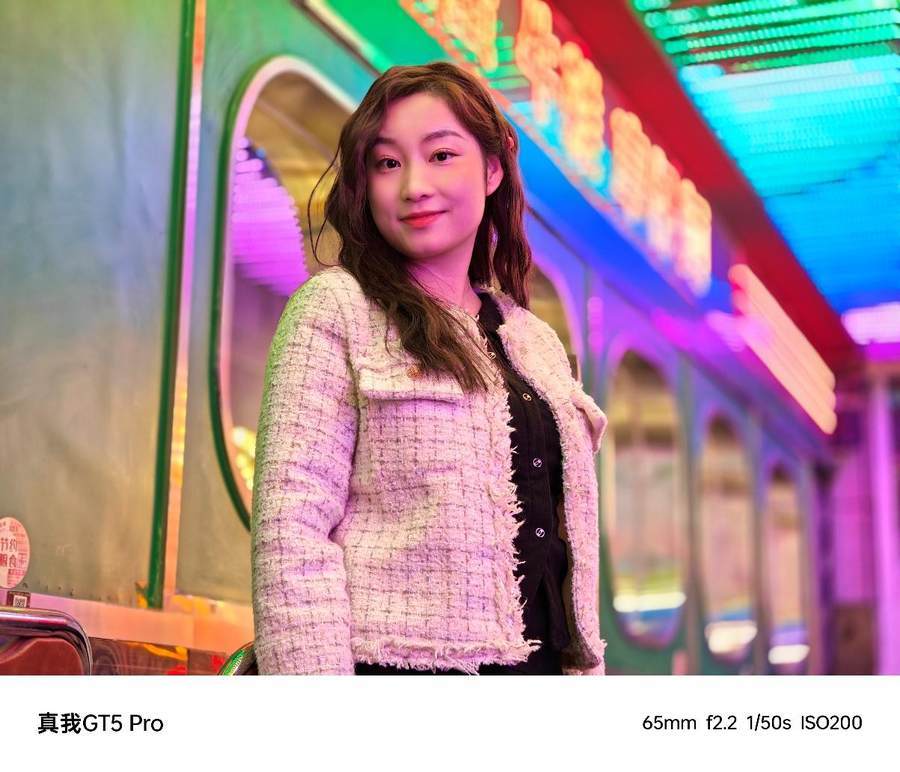 真我 GT5 Pro 在暗光长焦人像拍摄时的表现也十分突出,得益于索尼 IMX890 大尺寸传 感器的优势,从实拍的夜景长焦人像样片来看,同样保持了非常高的清晰度和画面纯净 度 。并且基于全新升级的超光影引擎,无论是人景关系的呈现,还是人像光影的还原, 整体照片的质感都大幅提升,让夜景人像拍摄也更有立体感与光影氛围。
