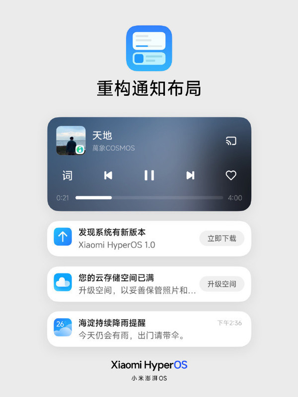 【手机中国新闻】12月7日晚,小米澎湃OS体验沟通会正式召开。据介绍,这次澎湃OS进行了底层架构重构,功能同样重构:通知中心重构通知样式,新增焦点通知设备通知;控制中心重构多端布局,更精简且利于单手操作;状态栏与设置,精炼设计,减少信息干扰;系统框架带来全新柔性框架,适应不同屏幕尺寸;以及更多细节重构,带来焕然一新的体验。