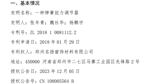 挖贝网12月8日,名扬科技(873986)近日发布公告,郑州名扬窗饰科技股份公司(以下简称“公司”)于近日取得中华人民共和国国家知识产权局颁发的一项《发明专利证书》(证书号第6539285号),具体情况如下: