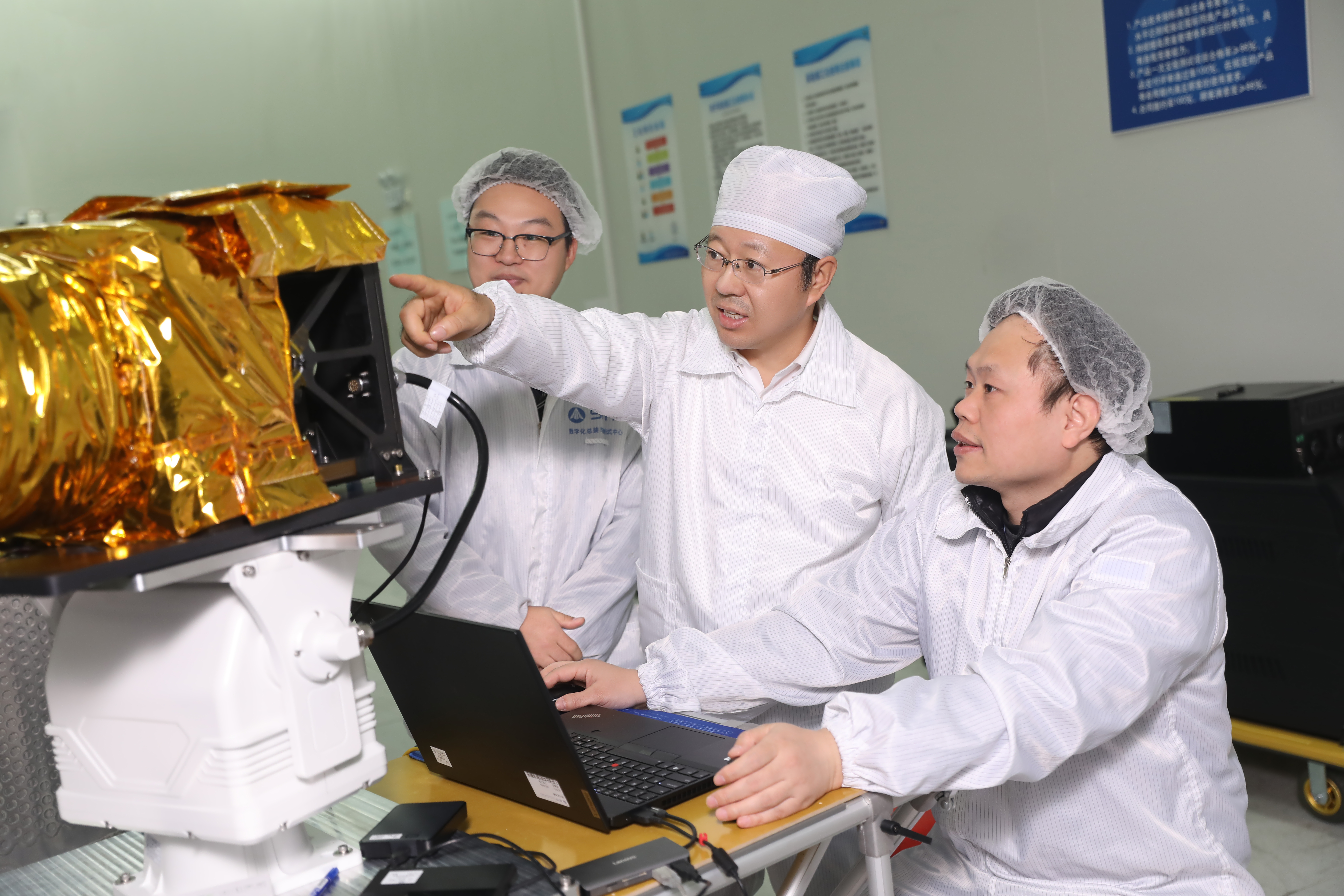 孙胜利院士(右二)在与科研团队成员探讨载荷研制