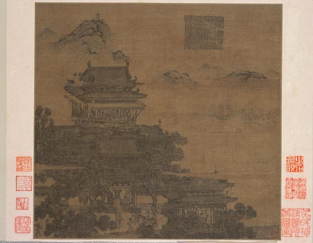 中国历代绘画馆此轮换展也新增多件书画精品。其中,出自元代界画高手夏永之手的《丰乐楼图页》,为首次公开展出。界画的高峰在宋代,到了元代,受文人画影响,延续这个创作传统的画家不多,夏永是少有的其中之一。他最擅长画亭台楼阁,取法元初宫廷画家王振鹏,尤以小幅见长。此图虽不大,但内容极为复杂精准——图绘丰乐酒楼,据记载,为南宋临安涌金门外临湖的酒楼。崇楼杰阁,外绕石墙。门外一人俟立,门口两人交谈,一人骑马而来,一仆背囊随行,两人牵马坠镫。图页以界笔直尺引线,界划精密,补以高树垂柳,远山小景,细笔勾皴。上端小字楷书《丰乐楼赋》,肉眼难以辨认,观众须放大后才能看清所书内容,体现了创作者高超的艺术水准。