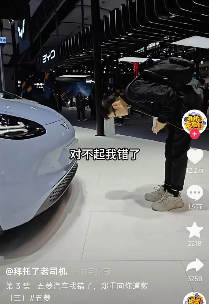 再者,不光在工作间里录视频道歉,王飞还亲自奔赴广州国际车展五菱展台找到负责人当面道歉。