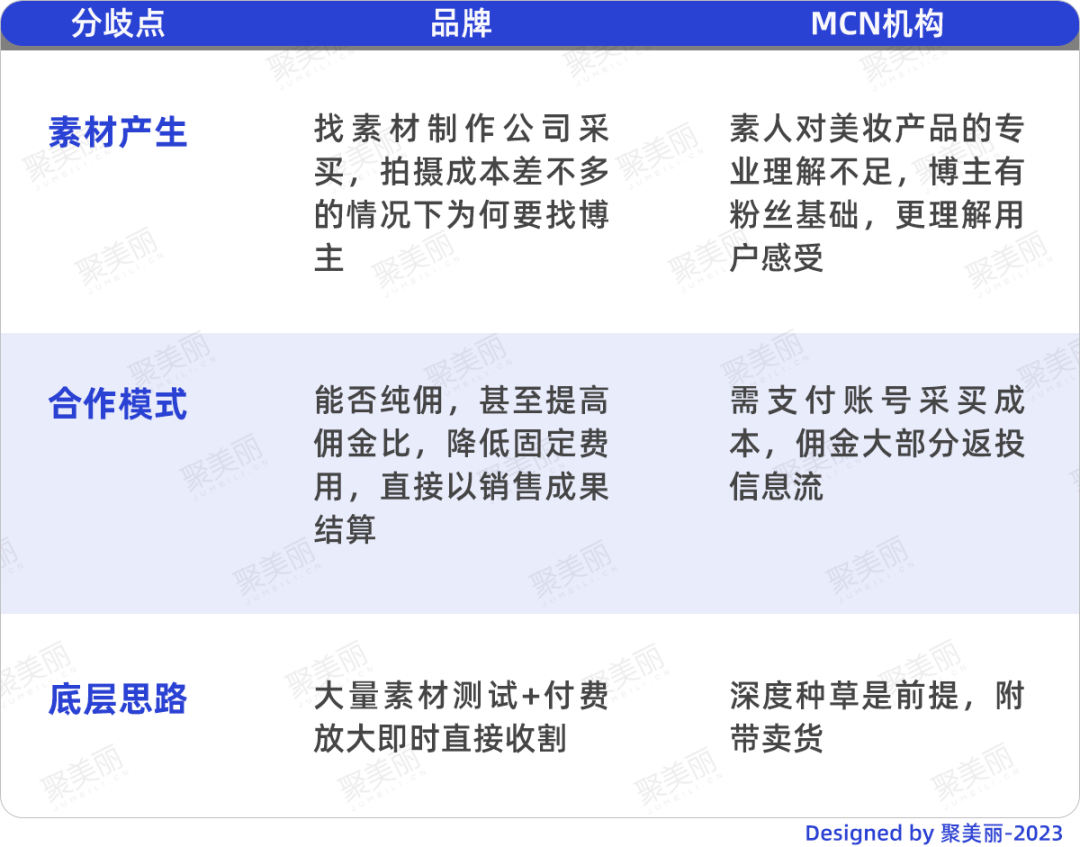 这两者是存在本质的区别,品牌认为机构成为了卖货公司,而MCN机构自始至终是内容种草公司(就算是做直播,也是需要品牌种草先行),通过挂车等突破,增加给品牌客户的价值。