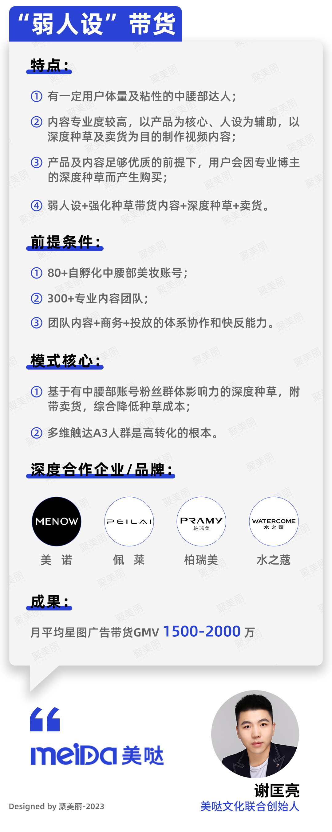 所以,内容挂车成为了更为可行的路径,美哒文化就是在这条路径上跑通了跟国货合作的模型: