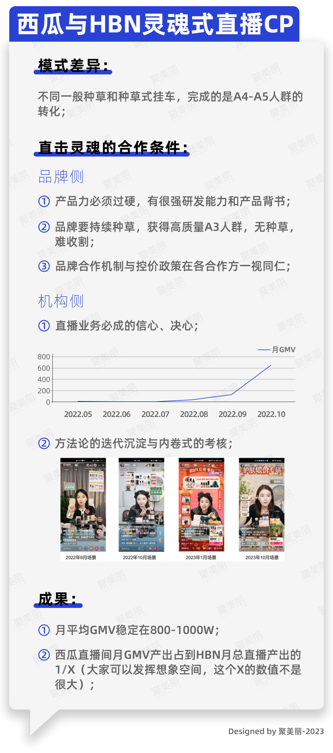 ①从5月的GMV 1w开始(没看错,就是1w),历经半年做到单月稳定在800-1000wGMV;