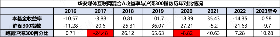 2015年底正是牛市末期,刚上任的胡宜斌步履艰难,2016年沪深300下跌11.2%,而他的代表作华安媒体互联网混合A险胜指数0.7个百分点。