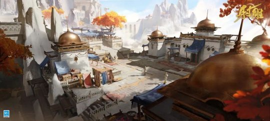 打开白驼山地图,浓郁的异域风情扑面而来——圆顶尖柱,彩布白墙,与耸立云端的高山融为一体,给人一种古朴神秘的美感。