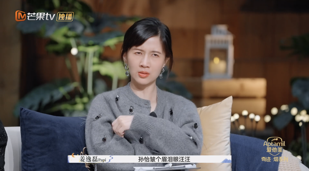 该条微博的配图中,孙怡眼眶通红,Melody掩面哭泣,其他嘉宾或多或少都有触动,唯独papi酱夹在其中,眉头紧锁,眼神里带着不解和疑惑。