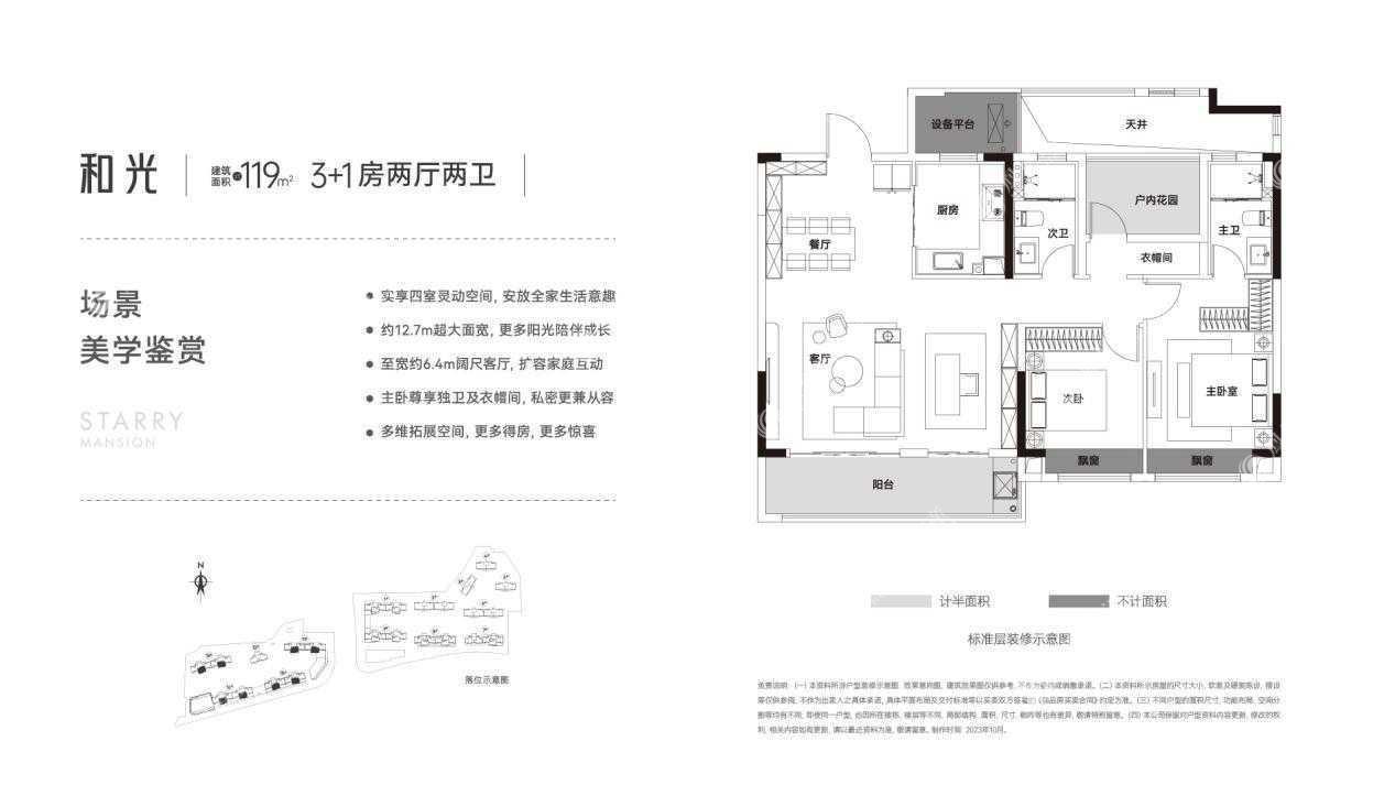 中建和悦宸光定位为低密改善,项目容积率仅2.37;总共规划了14栋14-17层的小高层,均为板楼、类板楼结构,分为东西两个地块,主力户型建面约119-192㎡。