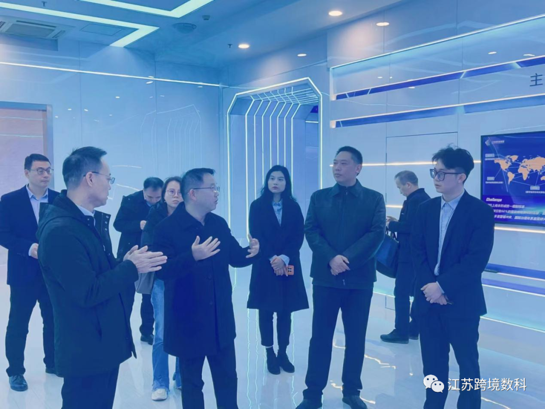 12月13日下午,南京市商务局副局长王超勇一行到访江苏国际数据港并进行座谈交流,徐庄高新区党工委委员、高新集团董事长、总经理邱峰、高新集团副总经理王涛及江苏跨境数科相关负责同志陪同。