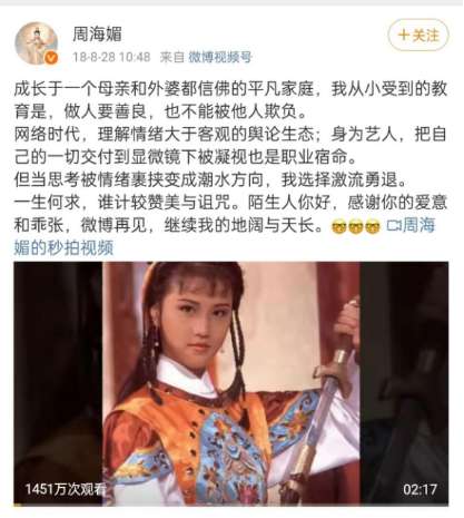 她直接宣布,永久退出微博。