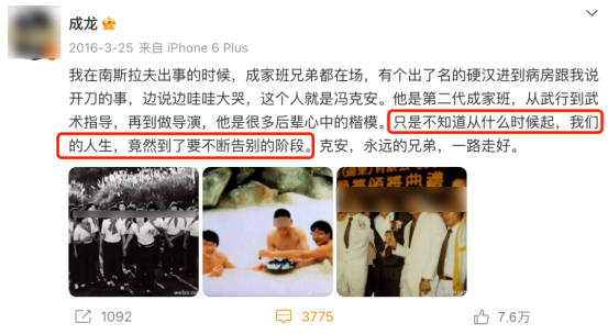 成龙曾说过一句话:“不知道从什么时候开始,我们的人生已经到了告别的阶段。”