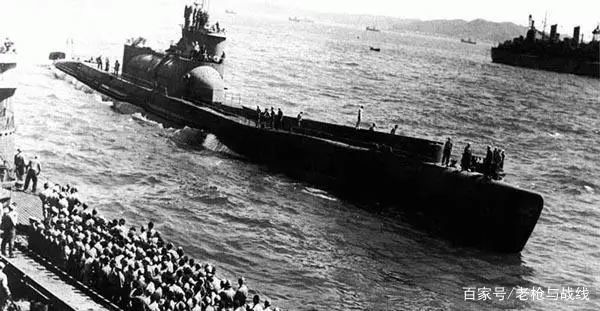 图19. 潜特型潜艇伊-400号投降时候的历史照片,可见潜艇的庞大及艇员的众多