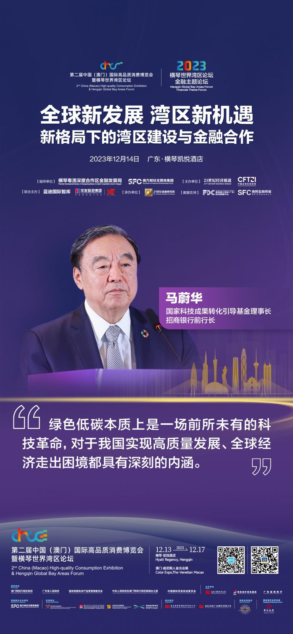 国家科技成果转化引导基金理事长马蔚华:粤港澳大湾区可以跨境金融为抓手,推动大湾区ESG合作