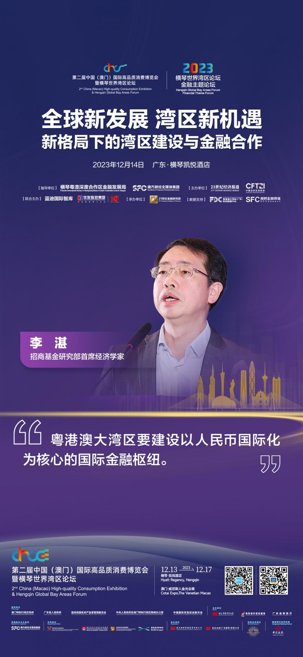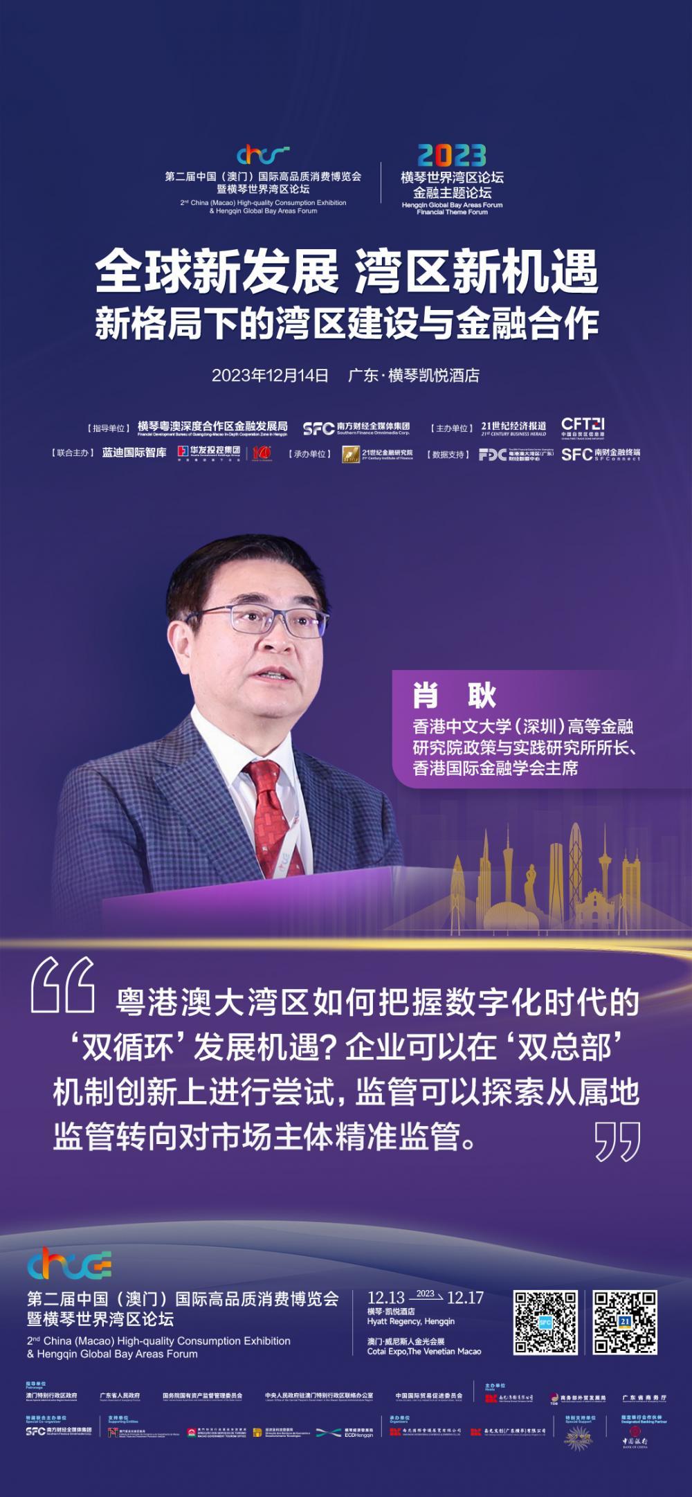 12月14日,第二届中国(澳门)国际高品质消费博览会暨横琴世界湾区论坛金融主题论坛在横琴举办。