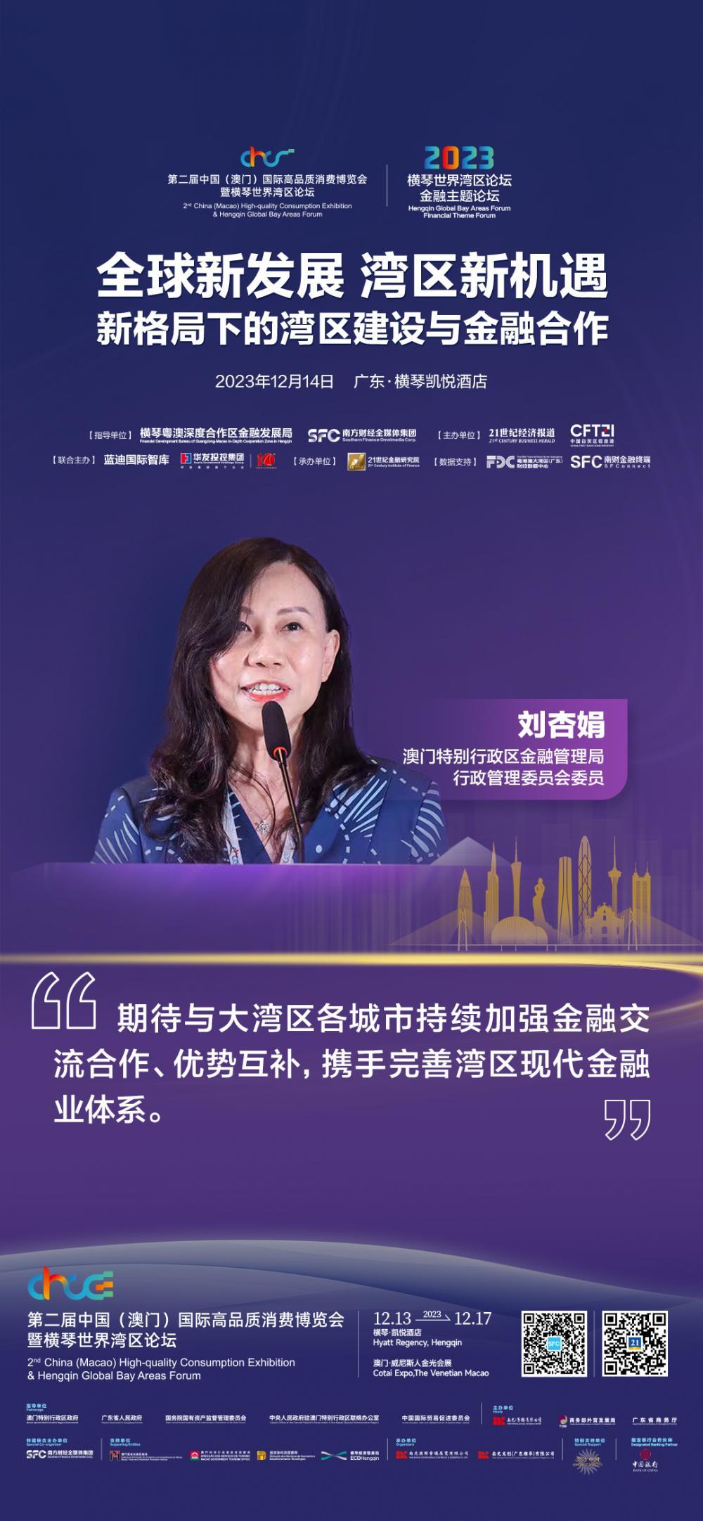 澳门金融管理局刘杏娟:重点拓展债券市场和财富管理等新金融业态,为澳门金融产业增添新动力