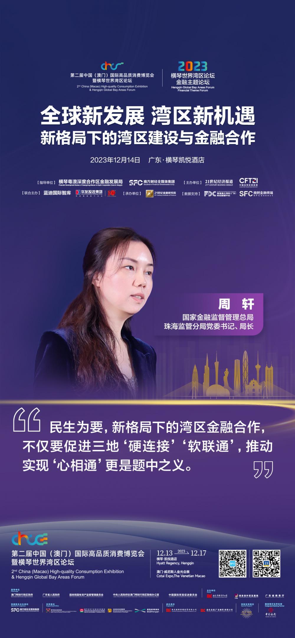 国家金融监管总局珠海监管分局局长周轩: 全力支持横琴粤澳深度合作区打造金融合作新高地