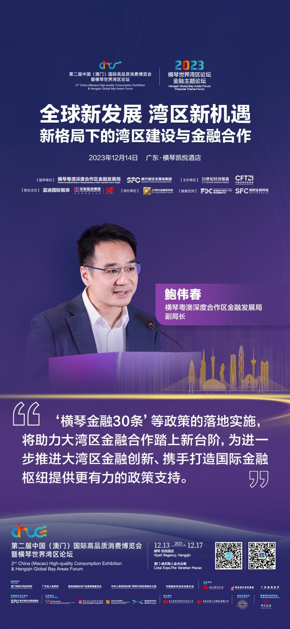横琴合作区金融局鲍伟春:加强琴澳金融市场联动,推动跨境金融合作取得新突破