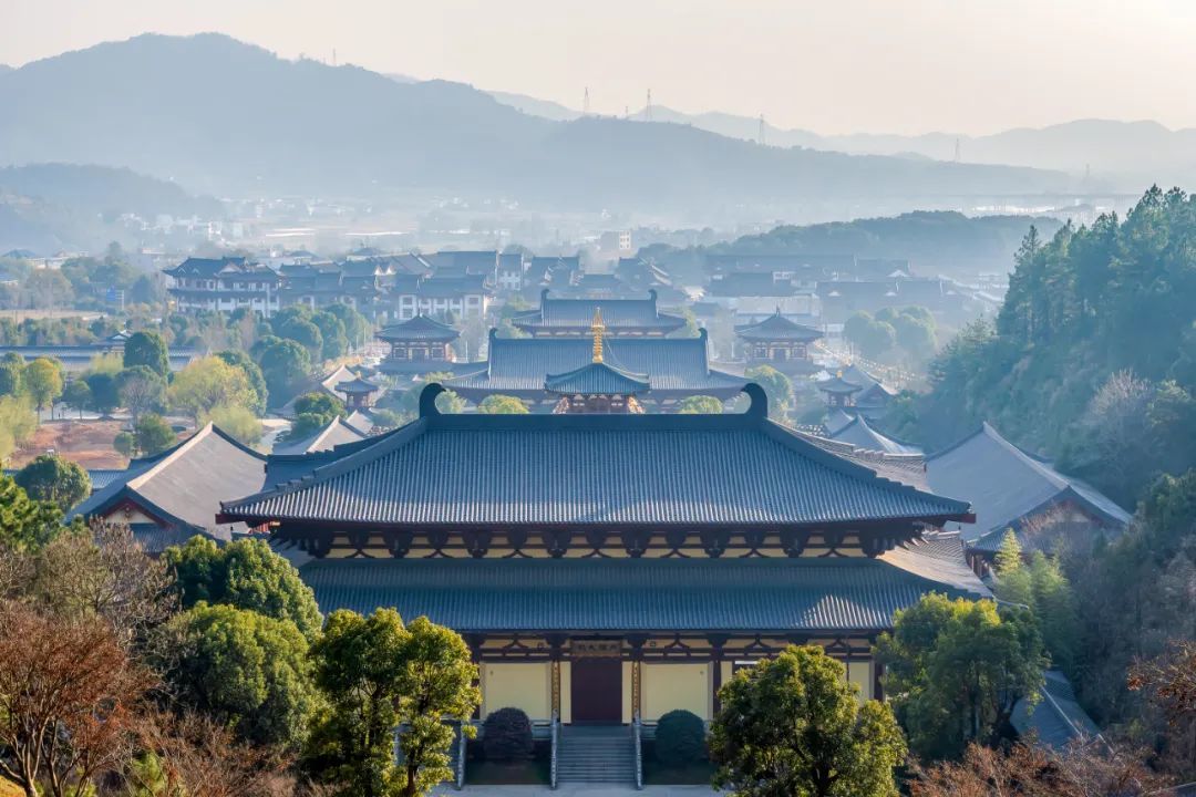 如果说大佛金身极具庄严肃穆之感,东林寺寺庙建筑则带有几分唐宋遗风的雅趣。