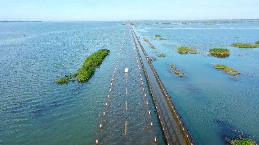 永吴公路全长5.05千米,是为了保护候鸟的迁徙而建。湖水的汛期只有短短三个月,大家去之前一定要查看好时间。