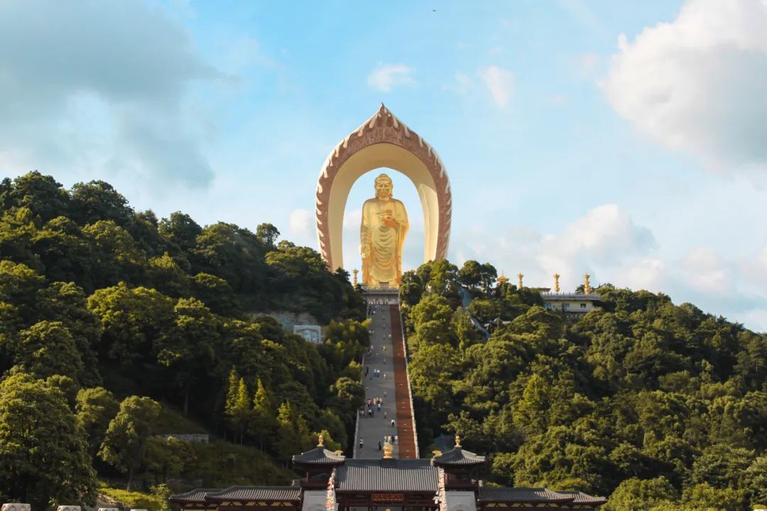 东林大佛,佛像身高48米,总高81米,是世界上最高的阿弥陀佛像。用48公斤黄金塑身,耗资10亿打造的东林大佛,却不用来做商业佛事,也不收朝礼的门票。