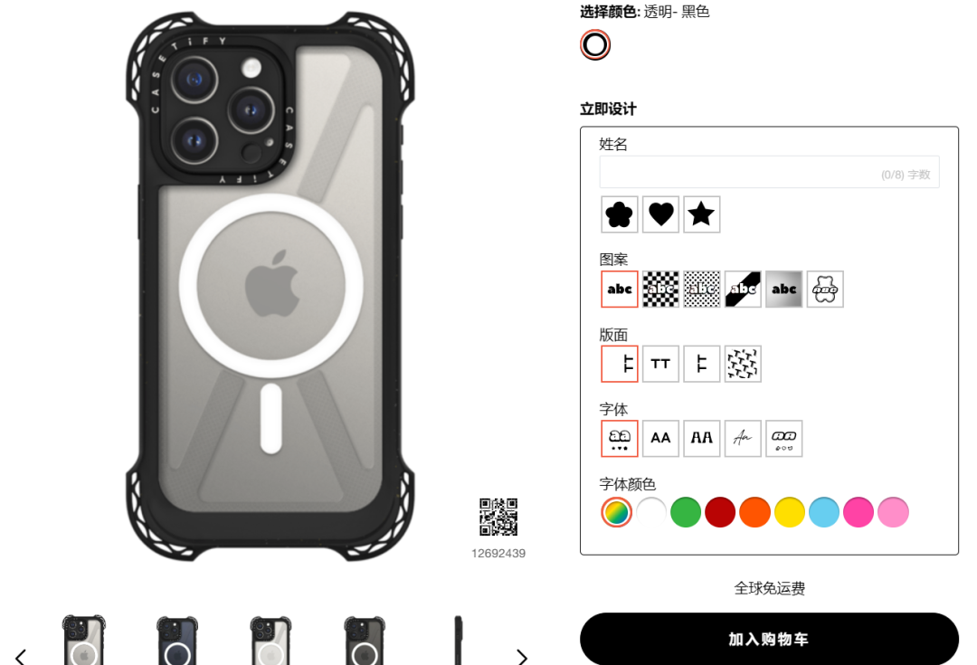 相比于其他品牌的“定制服务”,CASETiFY的模板中加入了更多设计元素,而不是单纯的DIY,用户可以在模板基础上,调整文字方向、字体、颜色等,能够满足个性化的同时,做出具有设计感的手机壳。