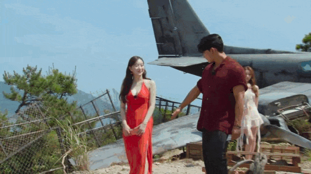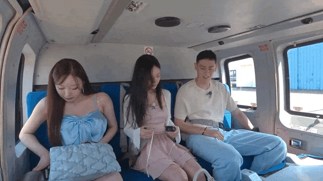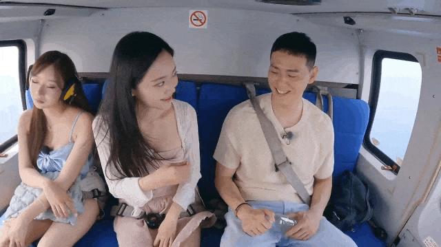 到了直升机上,自信男很自然地帮自信女系安全带,自信女也自然地和旁边的普拉提女(女三)说话。