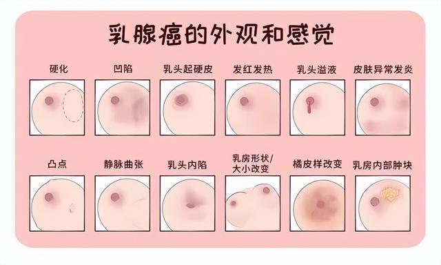 一旦发现有以下图片显示的异常时,应提高警惕,它们有可能是乳腺癌发出的早期信号。
