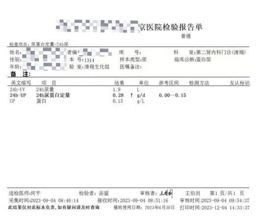 2020年,尿蛋白、潜血,微量白蛋白也高,才后知后觉,觉得是肾有问题。门诊挂号三甲医院肾内科副主任医生,当时有尿路感染,第一次做了24小时定量结果0.24g,医生让先治疗尿路感染,并没有建议住院检查。