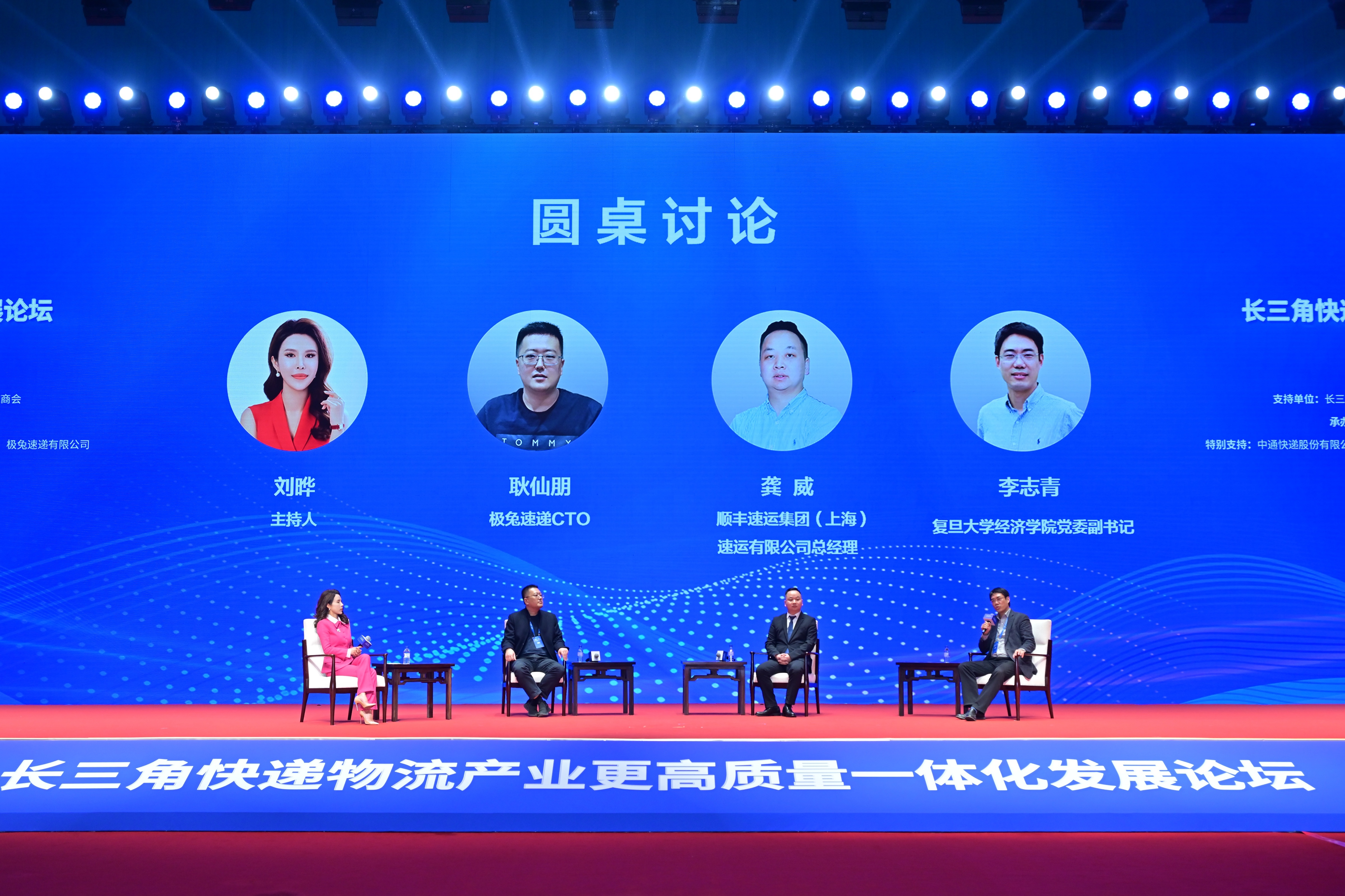 圆桌讨论环节,极兔速递CTO耿仙朋、顺丰速运集团(上海)速运有限公司总经理龚威、复旦大学经济学院党委副书记李志青就如何赋能上游的农产品、工业品,提升中国制造、中国企业在全球化中的核心竞争力作交流。