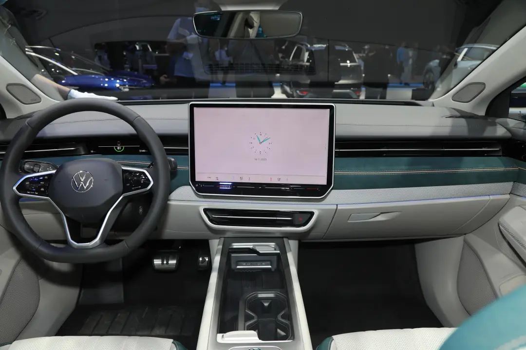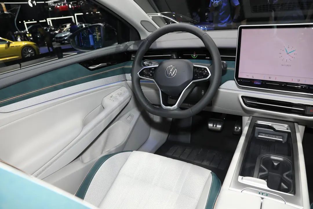 内饰方面,一汽-大众ID.7 VIZZION延续大众ID.家族简洁风格,但与先前上市的ID.4/6系列都有区别。中控台最大的变化在于将小尺寸仪表屏变为内嵌式设计,屏幕尺寸变得更小了,但悬浮式中控屏尺寸进一步扩大至15英寸,各种按键则依然采用了触摸式设计,操作还算简便。方向盘依旧是大众ID系列家族化的造型,原先集成在仪表屏右侧的旋钮式挡把在ID.7上变为了类似怀挡式的设计,不过旋钮D/R换挡方式以及P挡按键的操作方式与此前车型仍然是一样的。中央通道的部分是带卷帘盖板的半开放式储物槽,前排手机无线充电、Type-C接口和杯座都放在这里。