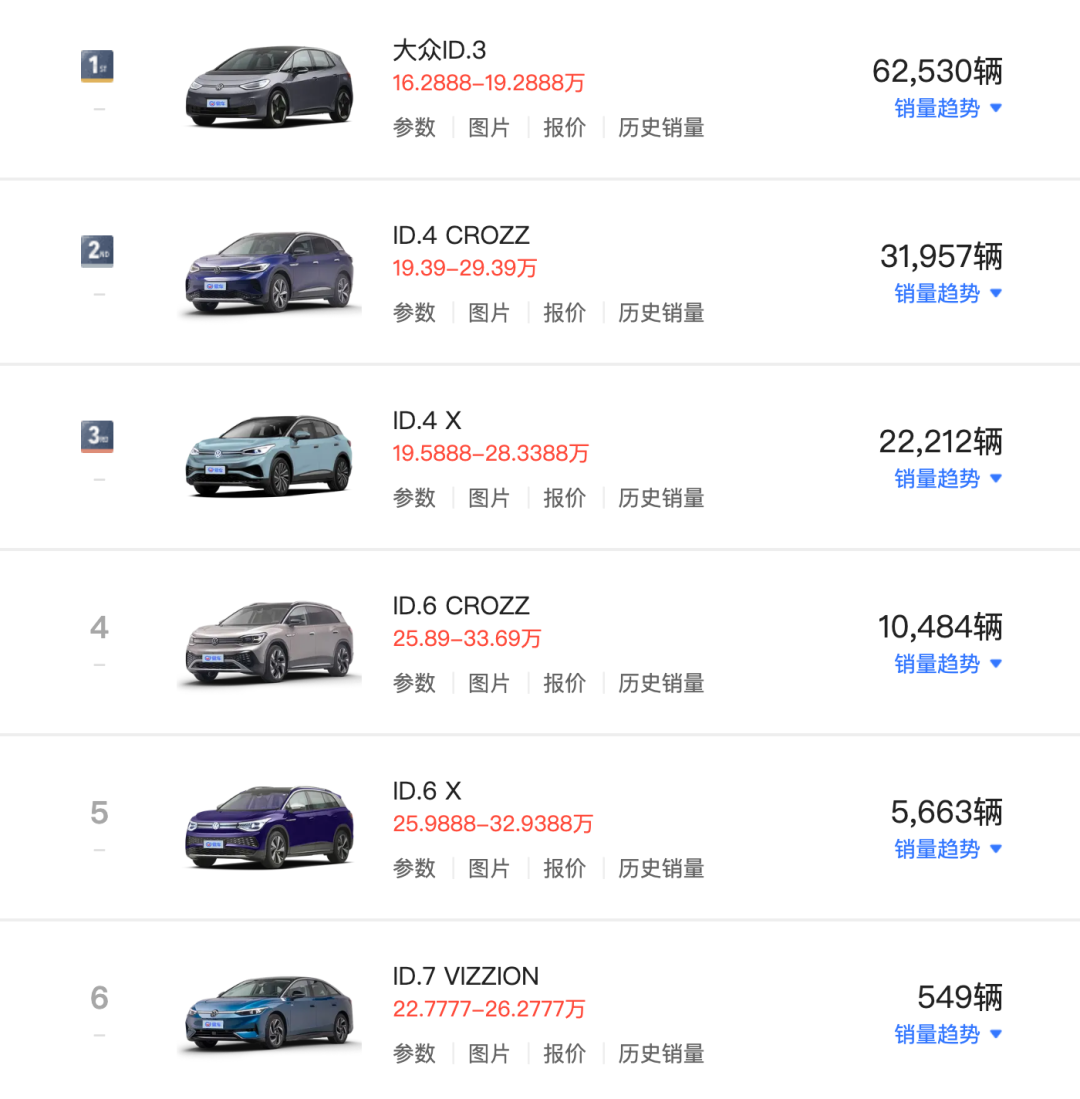 一汽-大众ID.7 VIZZION上市后,将成为大众ID.家族的第三款车型。零售数据显示,2023年前11月大众ID.4 CROZZ销量为3.20万辆,ID.6 CROZZ为1.05万辆,虽然高于其他合资品牌电动车,但远不及同级的国产品牌。一汽-大众ID.7 VIZZION的售价如何,能否扛起大众在电动车市场的宏伟目标,欢迎在评论区发表看法。