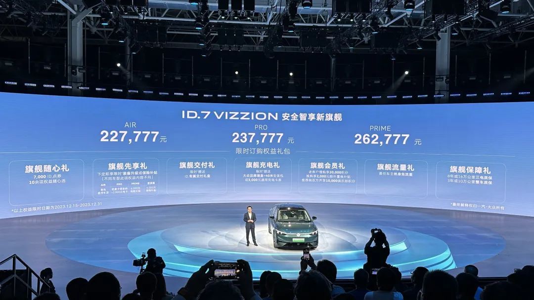 12月15日,一汽-大众ID.7 VIZZION正式上市,新车推出AIR、PRO、PRIME三款车型,售价区间为22.7777-26.2777万元。此外,官方还推出首发版(即此前预售车型),售价为23.0777万元。据了解,一汽-大众ID.7 VIZZION基于MEB纯电平台打造,定位纯电中型轿车,提供后驱和四驱动力可选,CLTC综合纯电续航642公里和570公里可选。