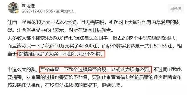 江西一神秘彩民,花了10万块中奖2.2亿,事件发生一周以来,仍然高挂热搜榜,因为不管从哪个方面来看,这事都太过蹊跷。
