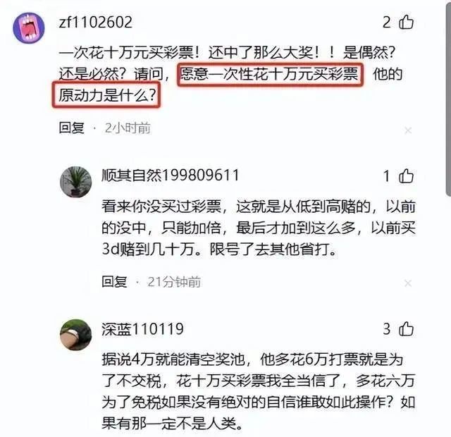 光是这一点,就足以令人爆炸,10万块钱买5万注同一个号码,不是穿越来的,就是照着中奖号码买的,不然哪个正常人会这么干?