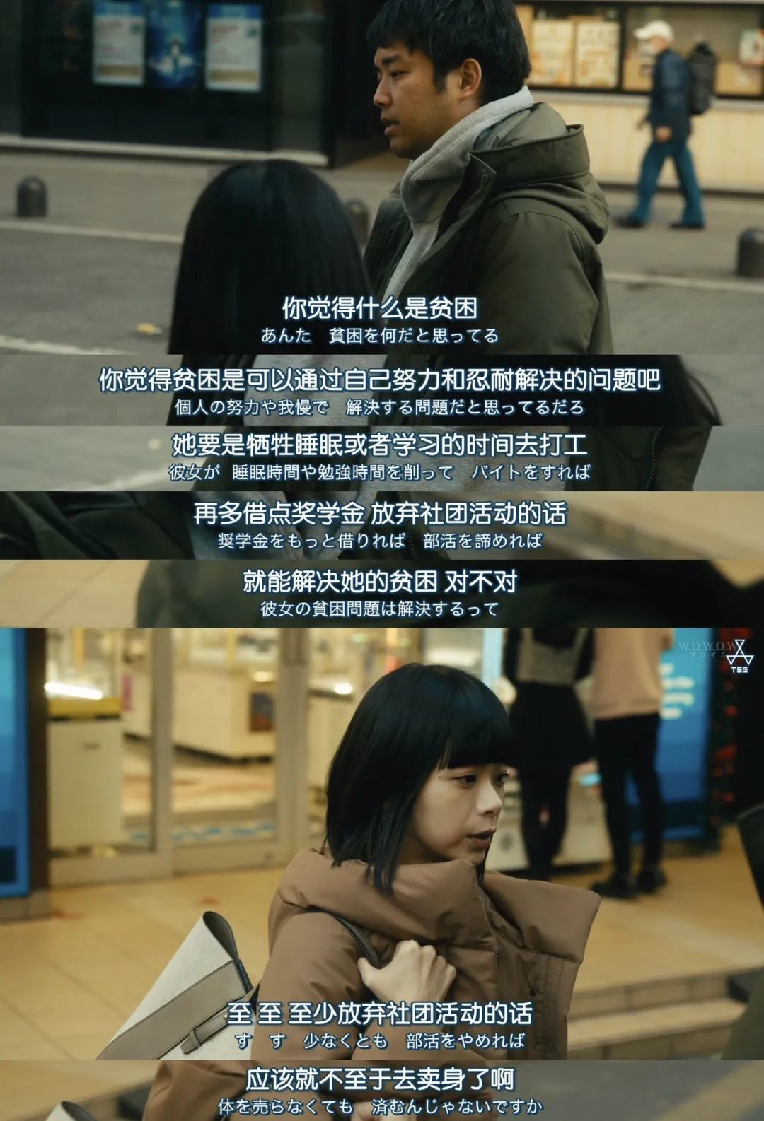 但在贫困女性问题上,一个关切底层女性的男前辈,几次三番看不起一个笨拙、不理解女性的女后辈。