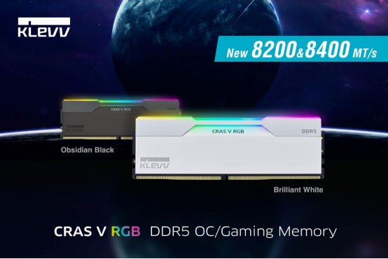 2023年12月18日,半导体及内存产品公司ESSENCORE艾思科旗下存储品牌KLEVV科赋推出旗舰款CRAS V RGB DDR5内存晶灿白版本,而且黑白两种配色都提供速度达到8200MT/s和8400MT/s的高性能版本。