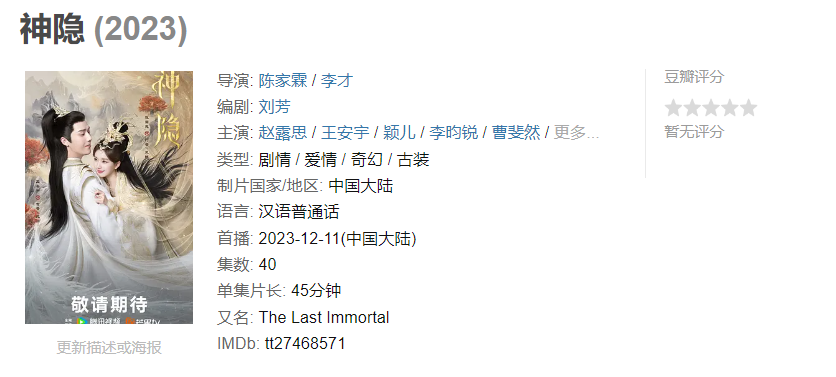 开播当天就被网友们刷差评吐槽的烂俗古偶剧《神隐》。