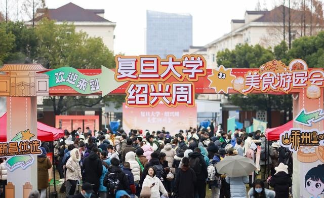 寒风细雨中,带有绍兴特色的美食游园会、文创展、当地专业剧团带来的越剧表演轮番热场,让复旦大学的学子们感受了一场视觉、听觉、味蕾及心灵的盛宴。名校与名城的双向奔赴不止于此,开幕式现场还发布了校地产业科创深度融合的一揽子计划。