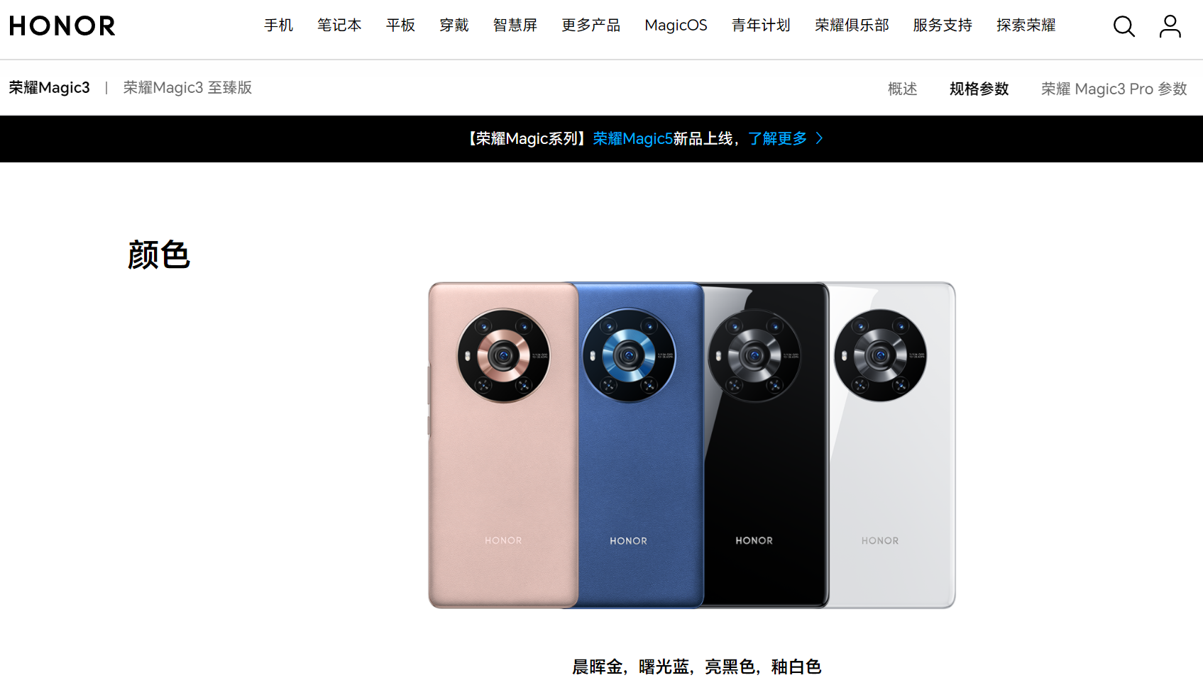 离开华为后,荣耀正式向高端市场发起冲击。2021年8月,荣耀发布荣耀Magic 3系列手机,搭载高通骁龙888 5G芯片,起售价4599元。