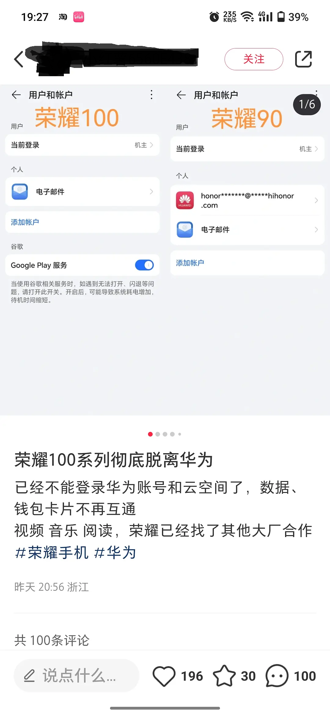 据悉,荣耀100系列是2023年11月23日才发布的最新款荣耀手机。荣耀CEO赵明也在发布会后表示,荣耀100系列开始,荣耀云服务已经和华为切割,会基于自己的云服务做更多的创新。