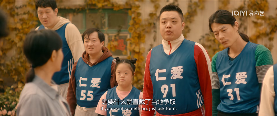 而值得注意的是,片中的仁爱之家队员里,有三位是现实中真实的智力残障人士出演的。