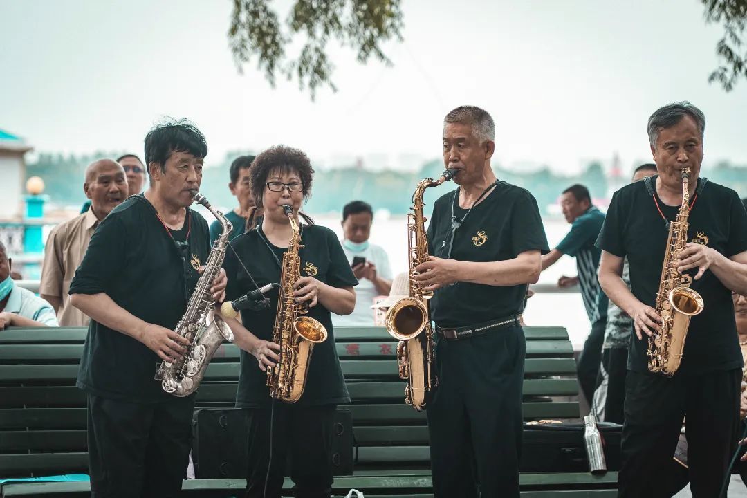 (2021年哈尔滨之夏音乐会期间,市民在街头表演,图片来源@视觉中国)