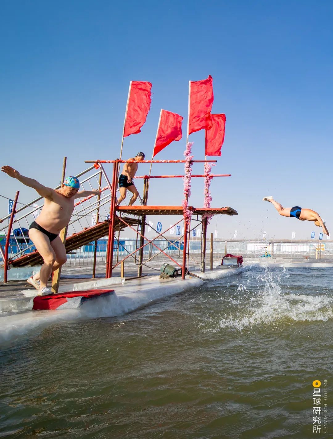 (冬泳的人们,一二三起跳!摄影师@陈刚)