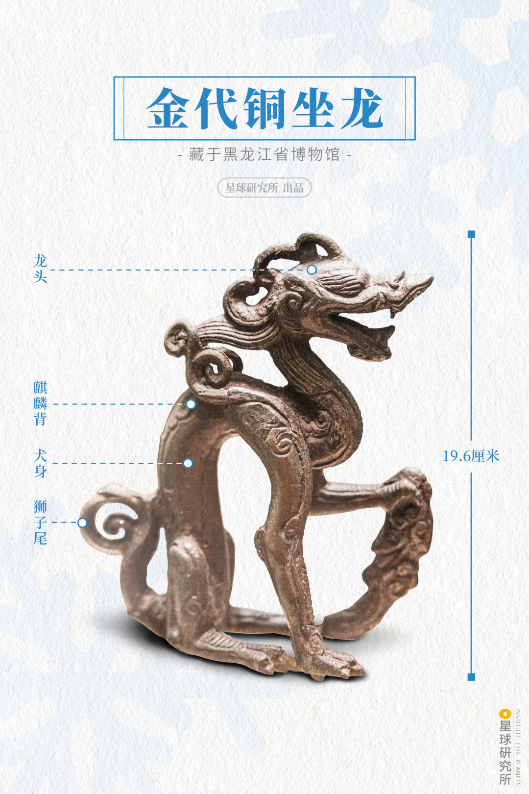 (金代铜坐龙,出土于哈尔滨市阿城区金上京会宁府遗址,金上京为金朝早期都城,待金迁都今北京后,便降为会宁府,摄影师@丁俊豪,制图@汉青/星球研究所)