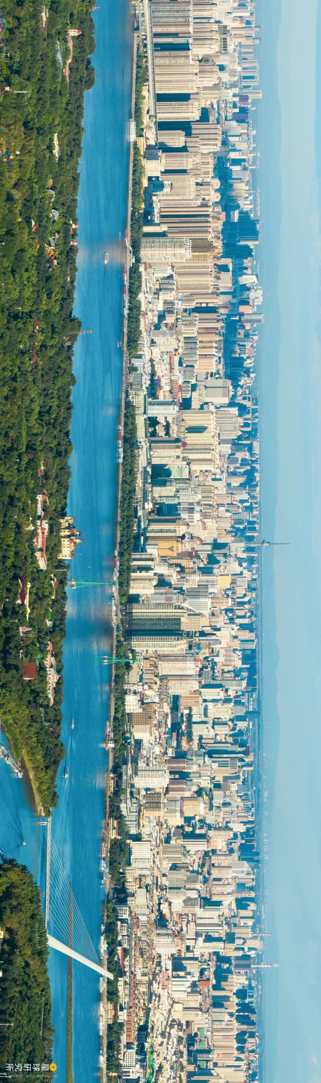 (请横屏观看,哈尔滨城市全景航拍,近处为太阳岛,中间是幽蓝的松花江,摄影师@刘项)