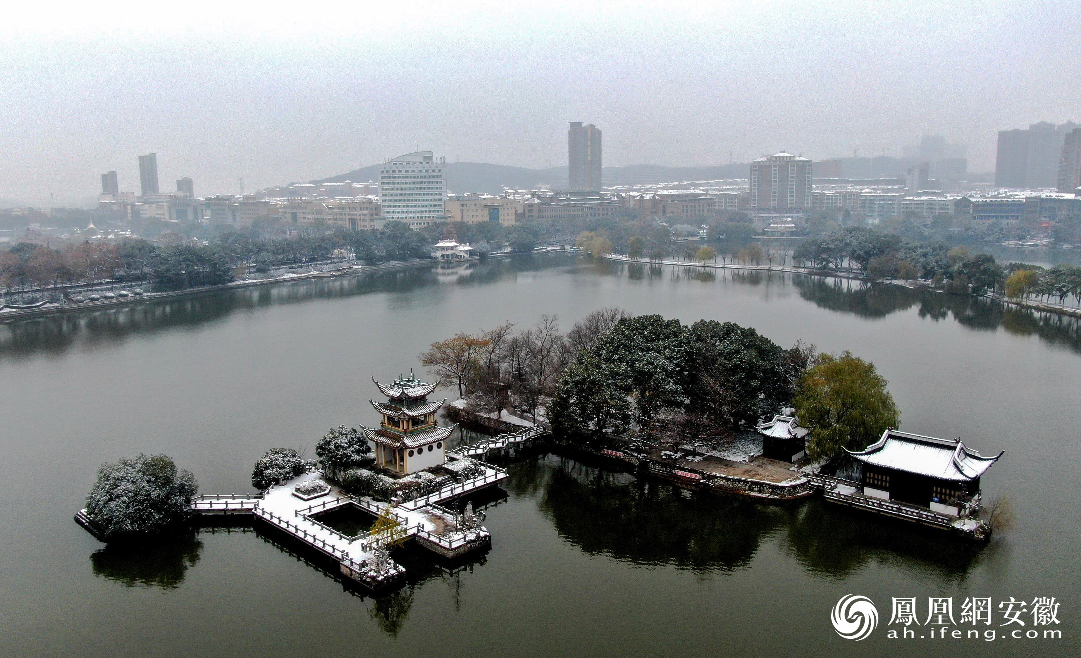 2023年12月19日拍摄的安徽省铜陵市天井湖公园及周边城区,美景如画。(凤凰网安徽特约摄影师 过仕宁/摄) 连日的降雪,地处长江南岸的安徽省铜陵市主城区天井湖公园及周边建筑银装素裹,宛如一幅幅江南水墨画卷,美不胜收。