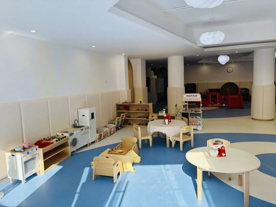 宝宝屋位于潍坊二村77号1楼,嵌入在潍坊社区党群服务中心内,面向1至3岁幼儿实施保育为主、教养融合的幼儿照护服务。宝宝屋面积近400平方米,内设运动区、益智区、阅读区、娃娃家等6间功能教室,还为月龄段较低的幼儿设置爬行区、运动区和探索区,最大可容纳132个托额。